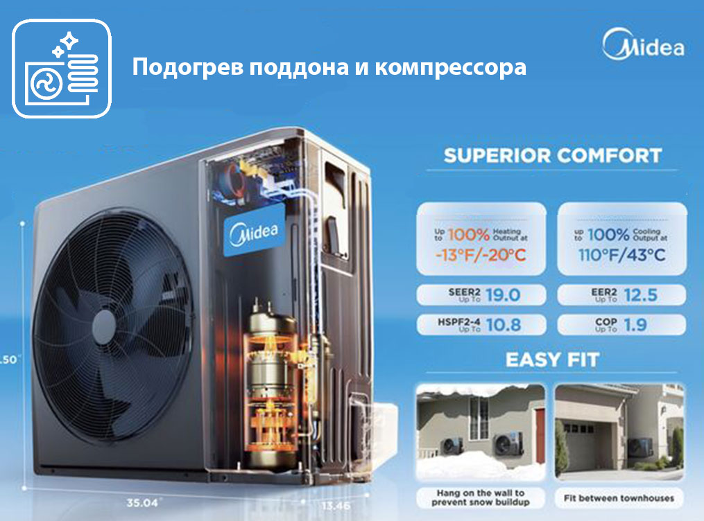 | Производительность обогрева 9/12/18/24 | 2.8/3,4/6.0/7.1 кВт |