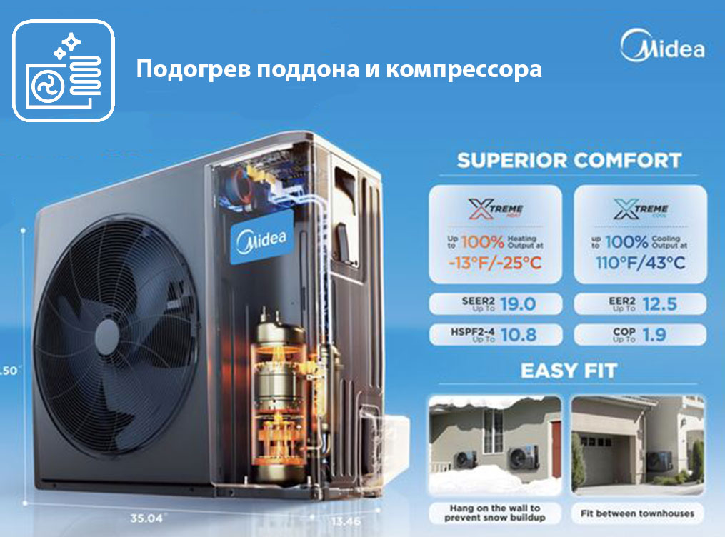 Кондиціонер Midea. Інверторний компресор Toshiba, Енергоефективність класу А++, Робота на обігрів до -25°С, Підігрів піддону та компресора, Низький рівень шуму 19 дБ, Wi-Fi модуль (опція 1170 грн), Фреон R32, Вр-во Гонконг, Гарантія 2 роки.